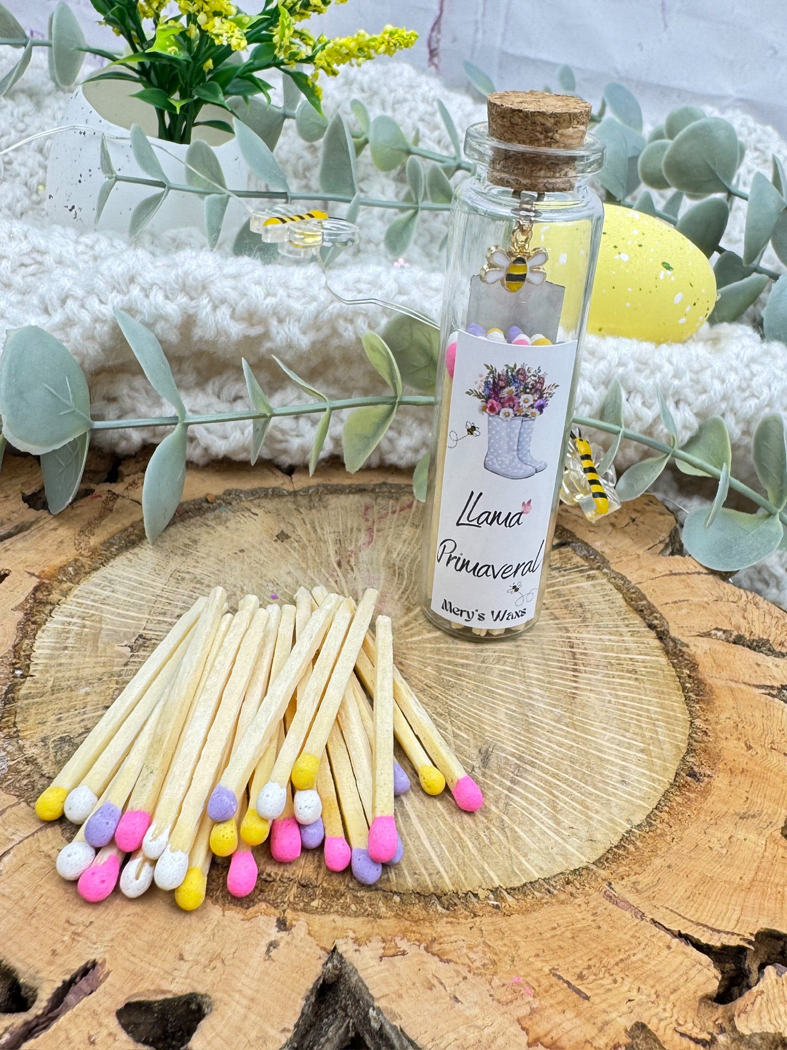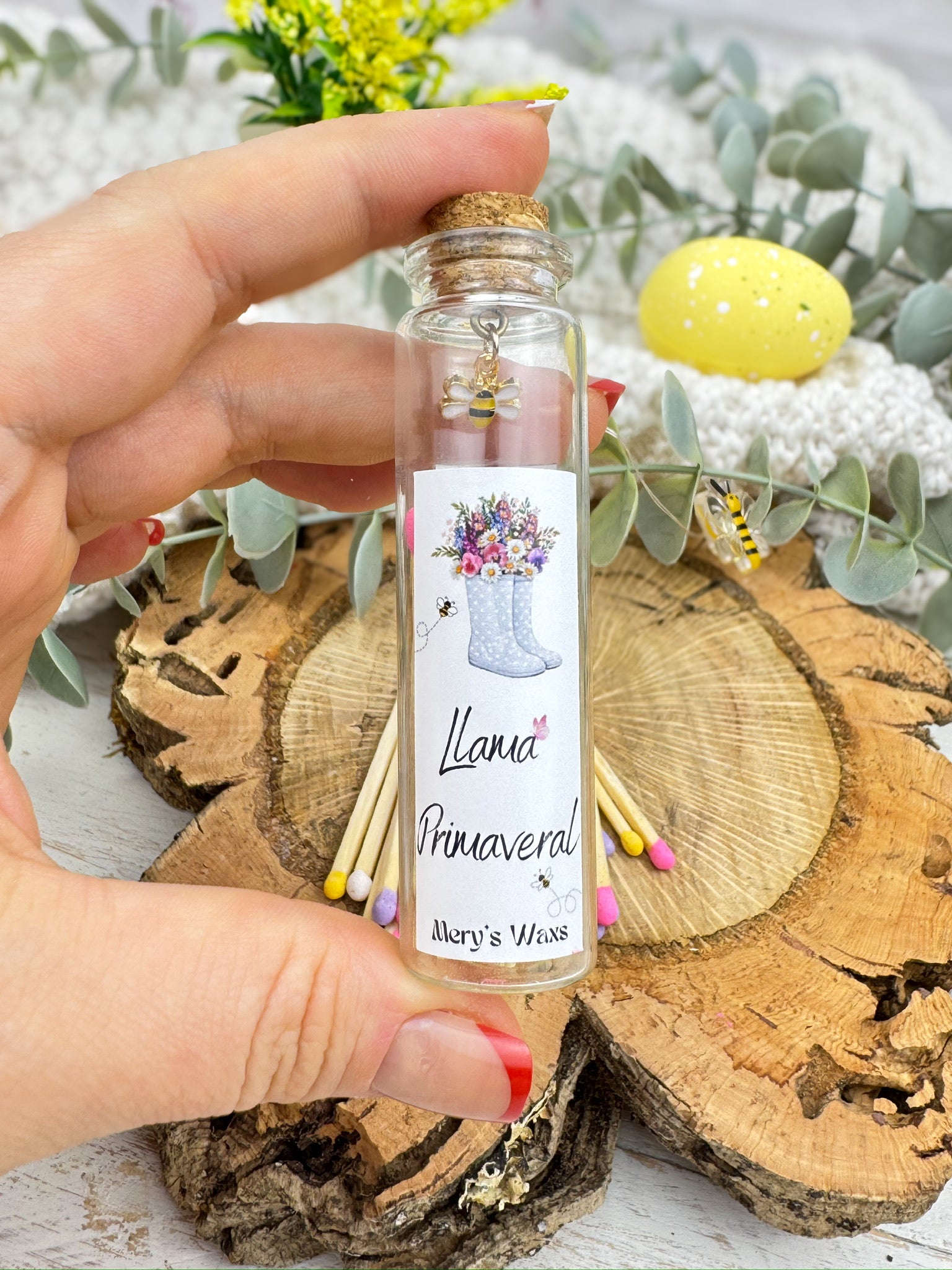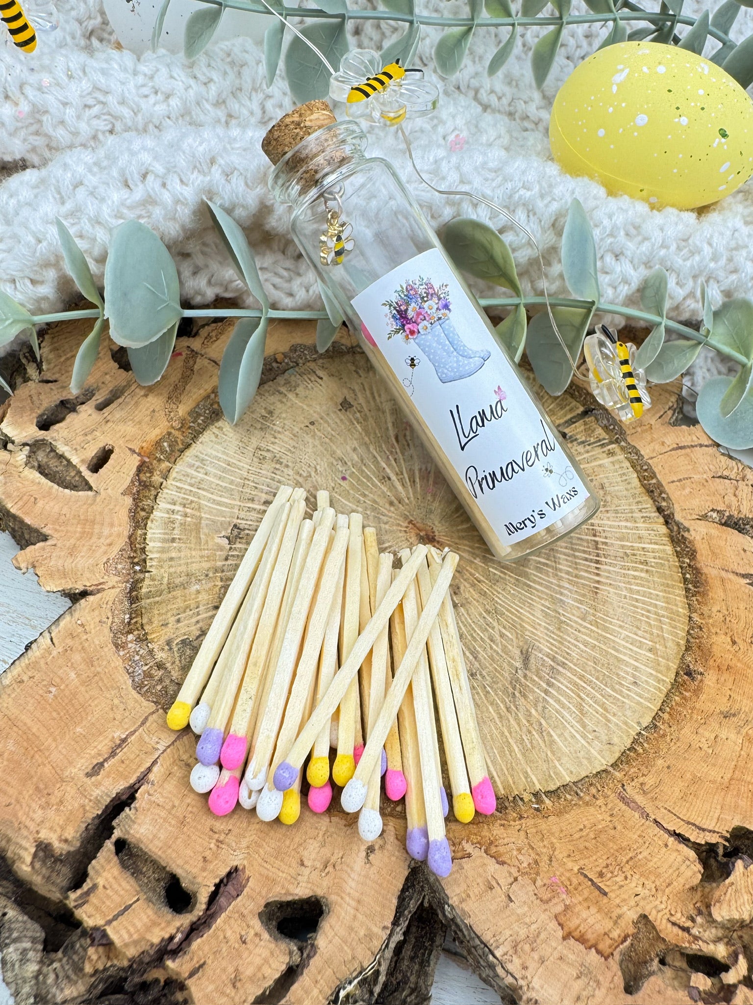 Una chispa de primavera en cada encendido. "Llama Primaveral" es un precioso bote de cerillas en tonos blanco, amarillo, rosa y lila, adornado con un delicado charm de abeja que aporta un toque dulce y natural. Ideal para acompañar tus momentos aromáticos o regalar calidez con estilo.