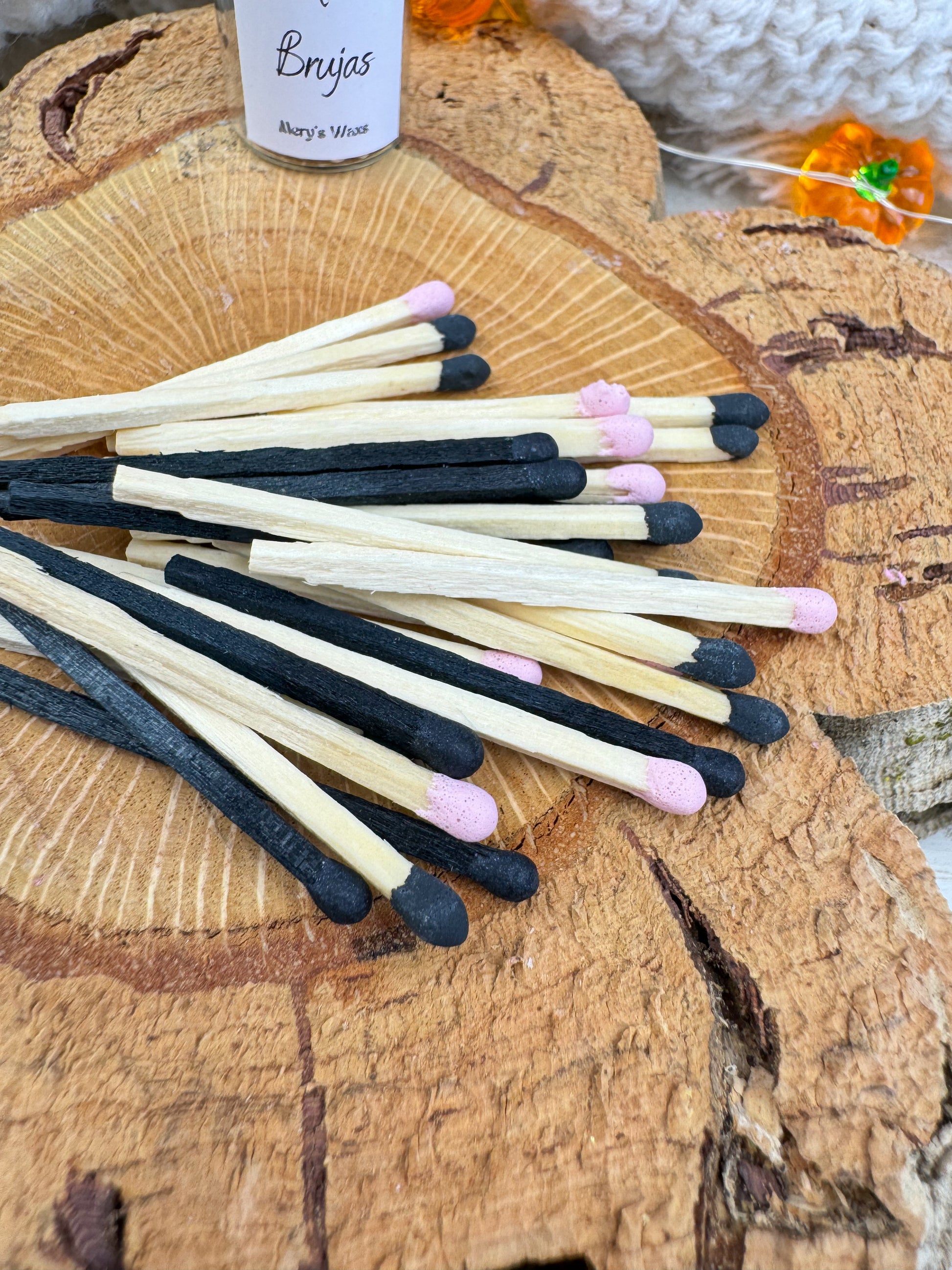 Las cerillas son de color negro y rosa (las cerillas negras son de dos tipo: cerillas negras completas y otras con cabeza negra).
