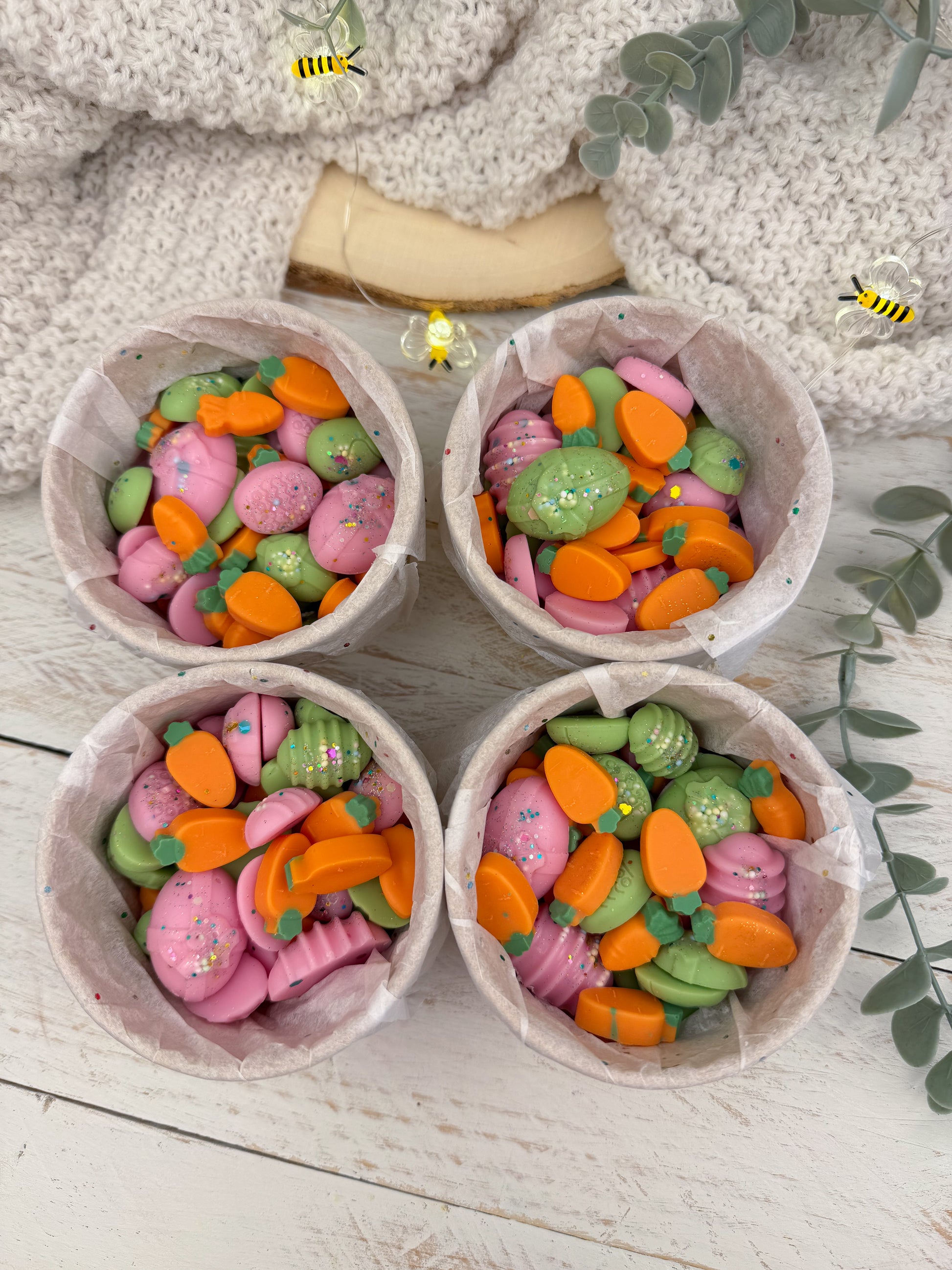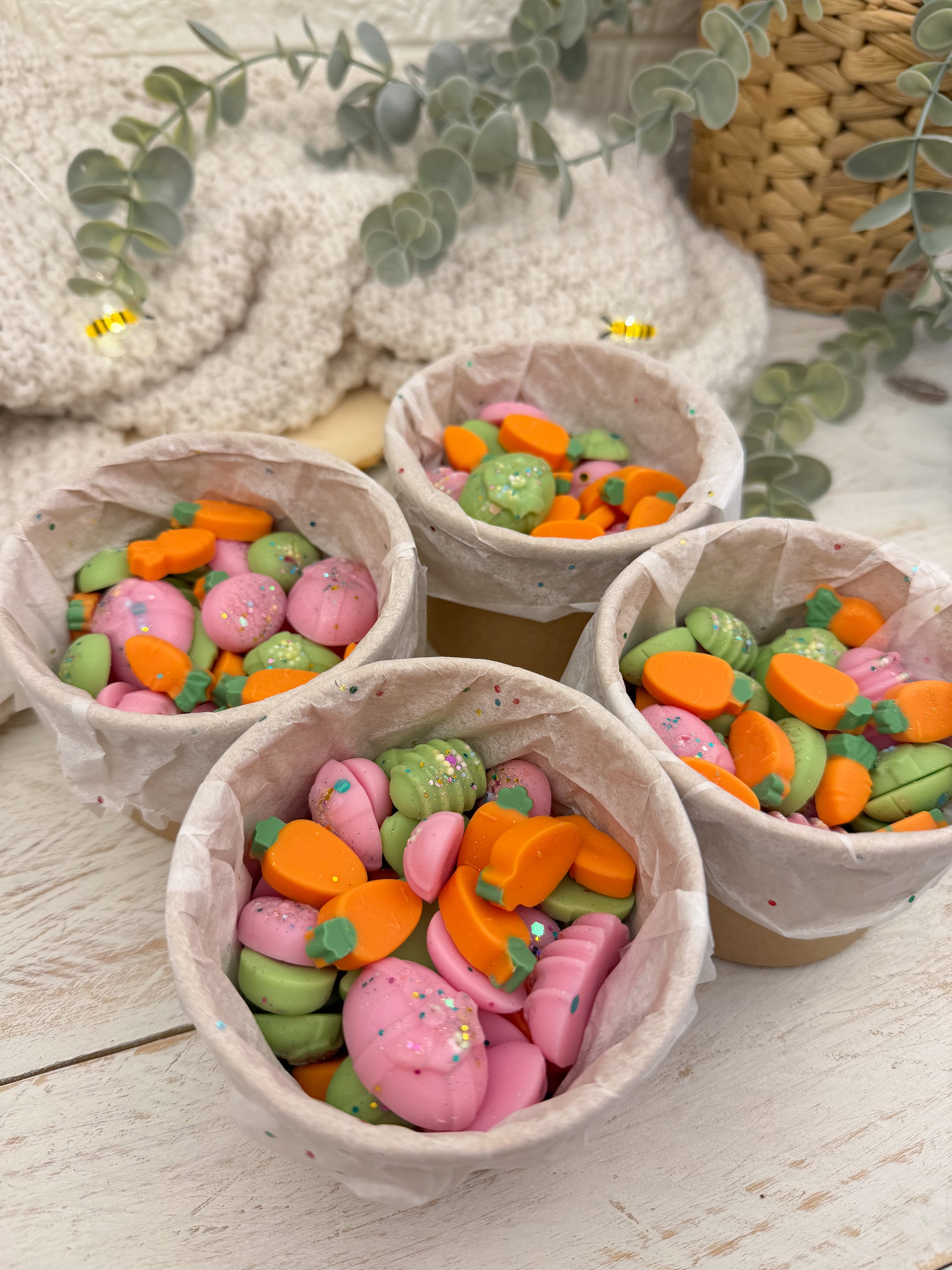 Todos nuestros productos son wax melts diseñados exclusivamente para aromatizar vuestros hogares. Aunque su apariencia pueda parecer real NO SON APTOS PARA SU CONSUMO.