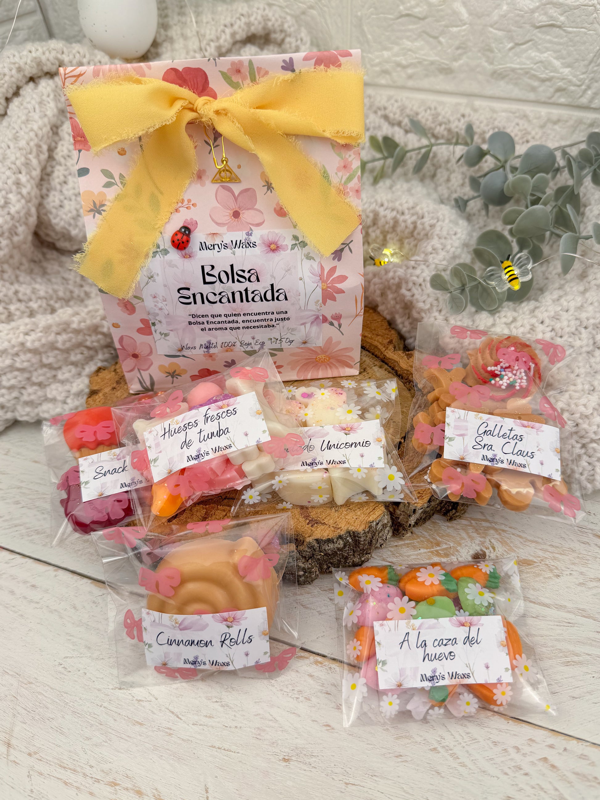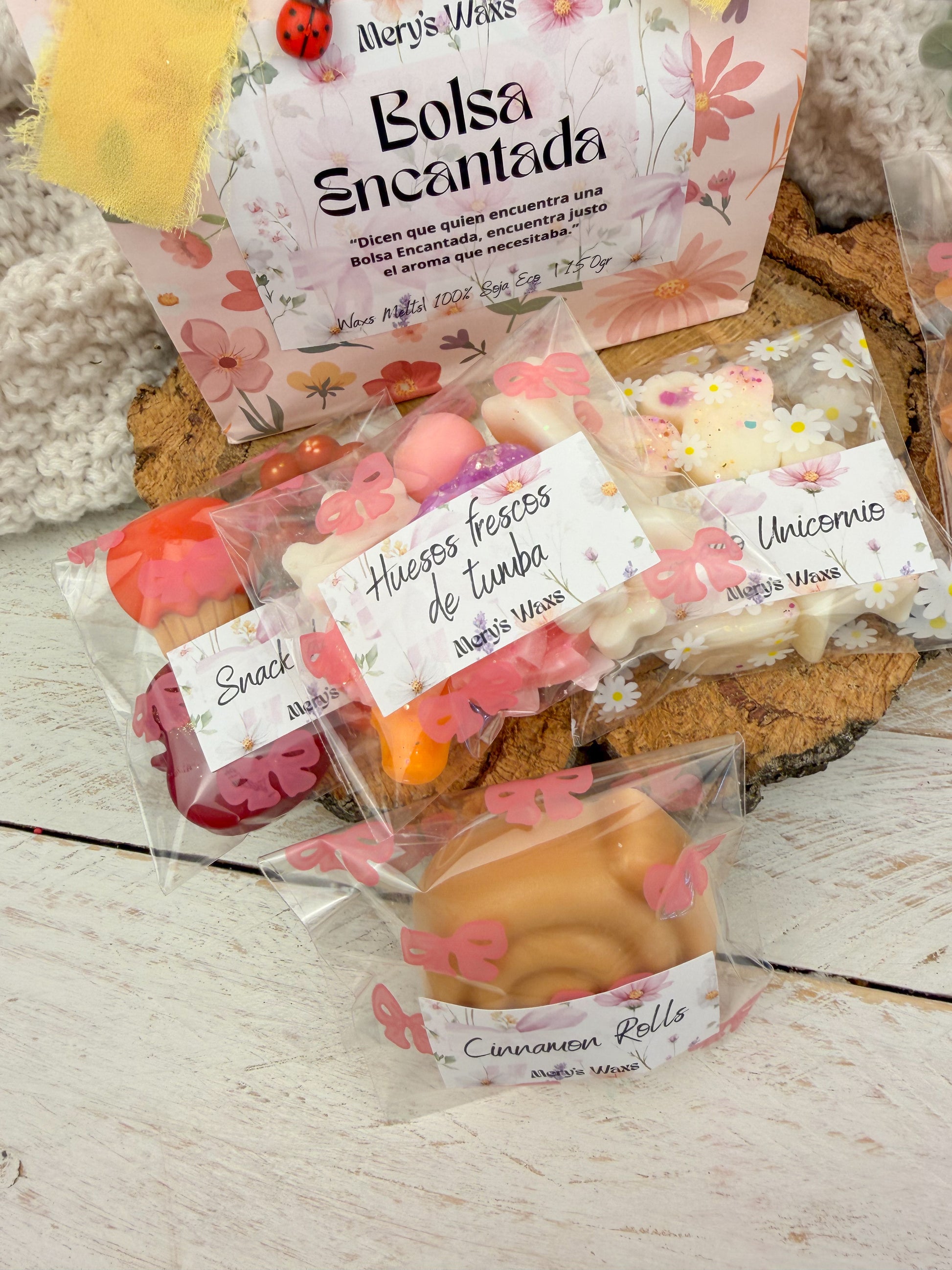 La Bolsa Encantada es una selección sorpresa de wax melts en formato figura, preparados al azar en mi taller 🤍