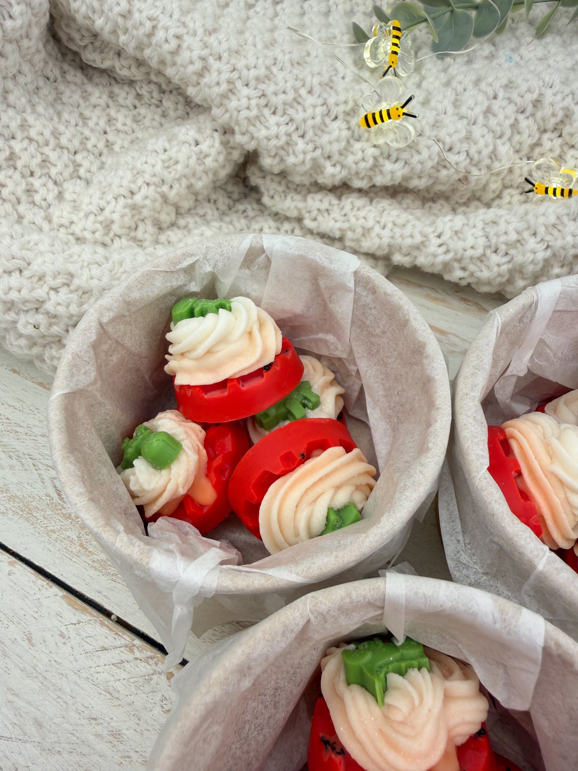 Todos nuestros productos son wax melts diseñados exclusivamente para aromatizar vuestros hogares. Aunque su apariencia pueda parecer real NO SON APTOS PARA SU CONSUMO.