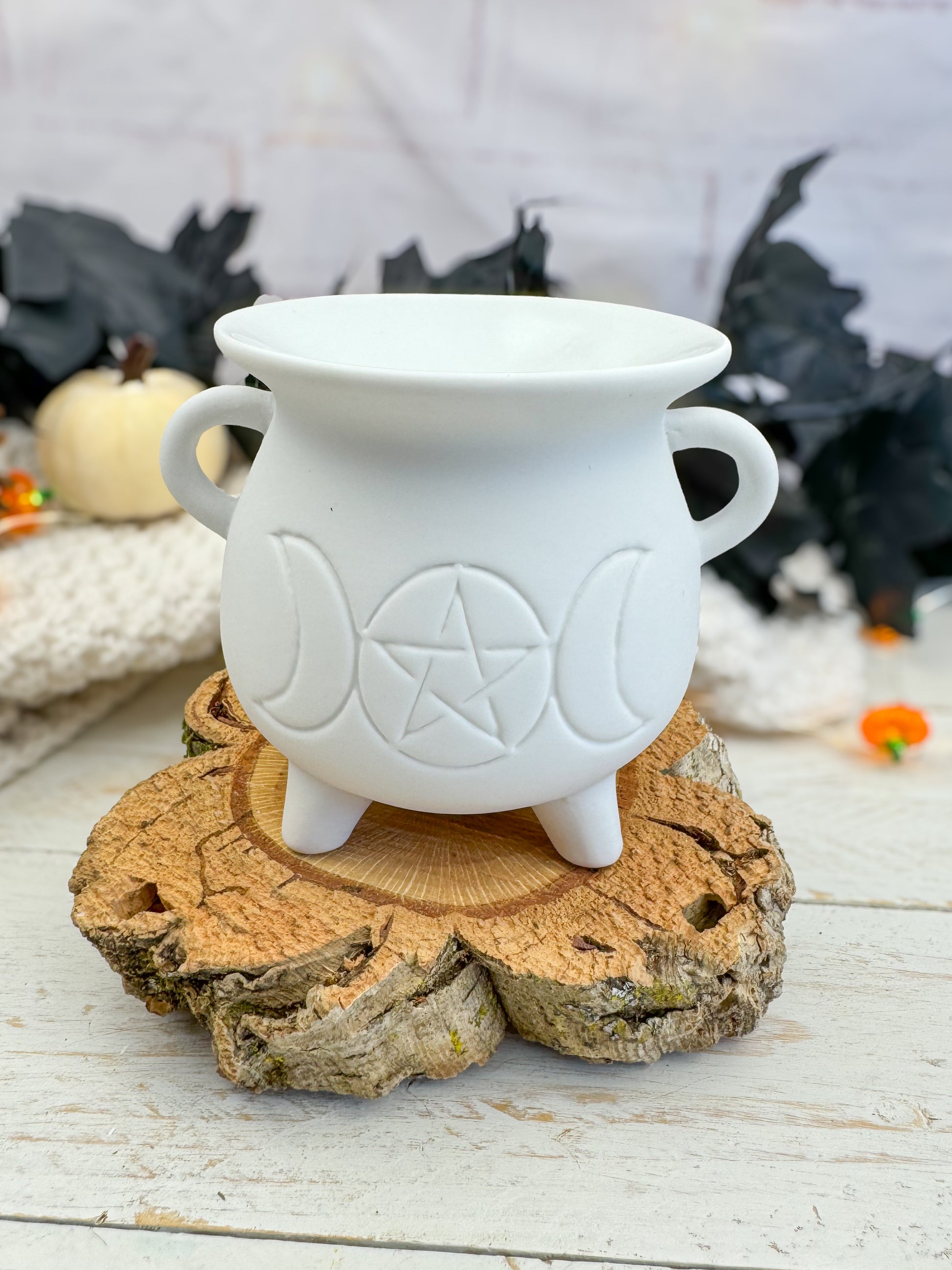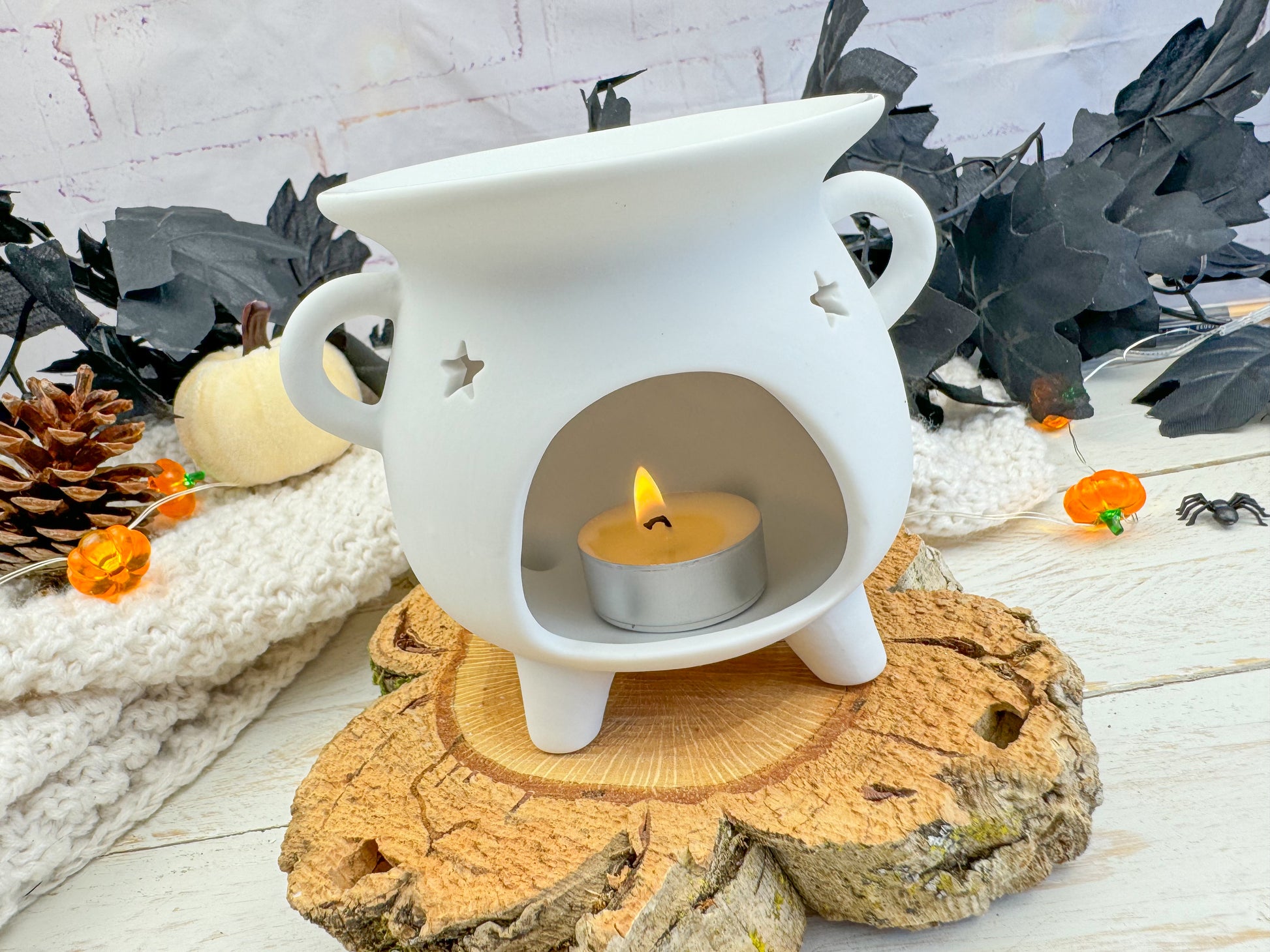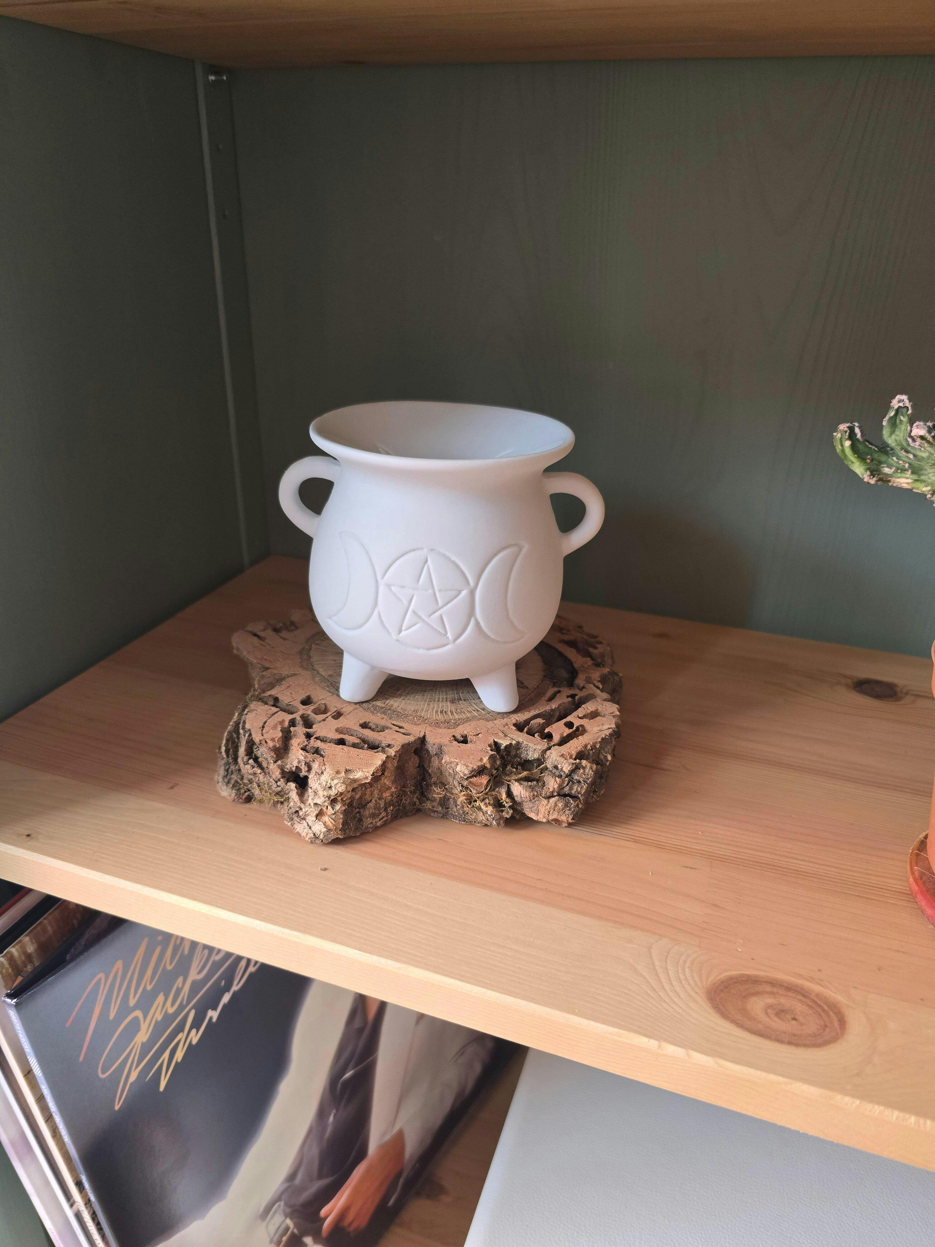 El quemador Caldero de Hechicera blanco de cerámica es el accesorio perfecto para crear un ambiente mágico en tu hogar. Diseñado con forma de caldero, este quemador está fabricado en cerámica blanca de alta calidad, lo que le otorga un estilo elegante y moderno.