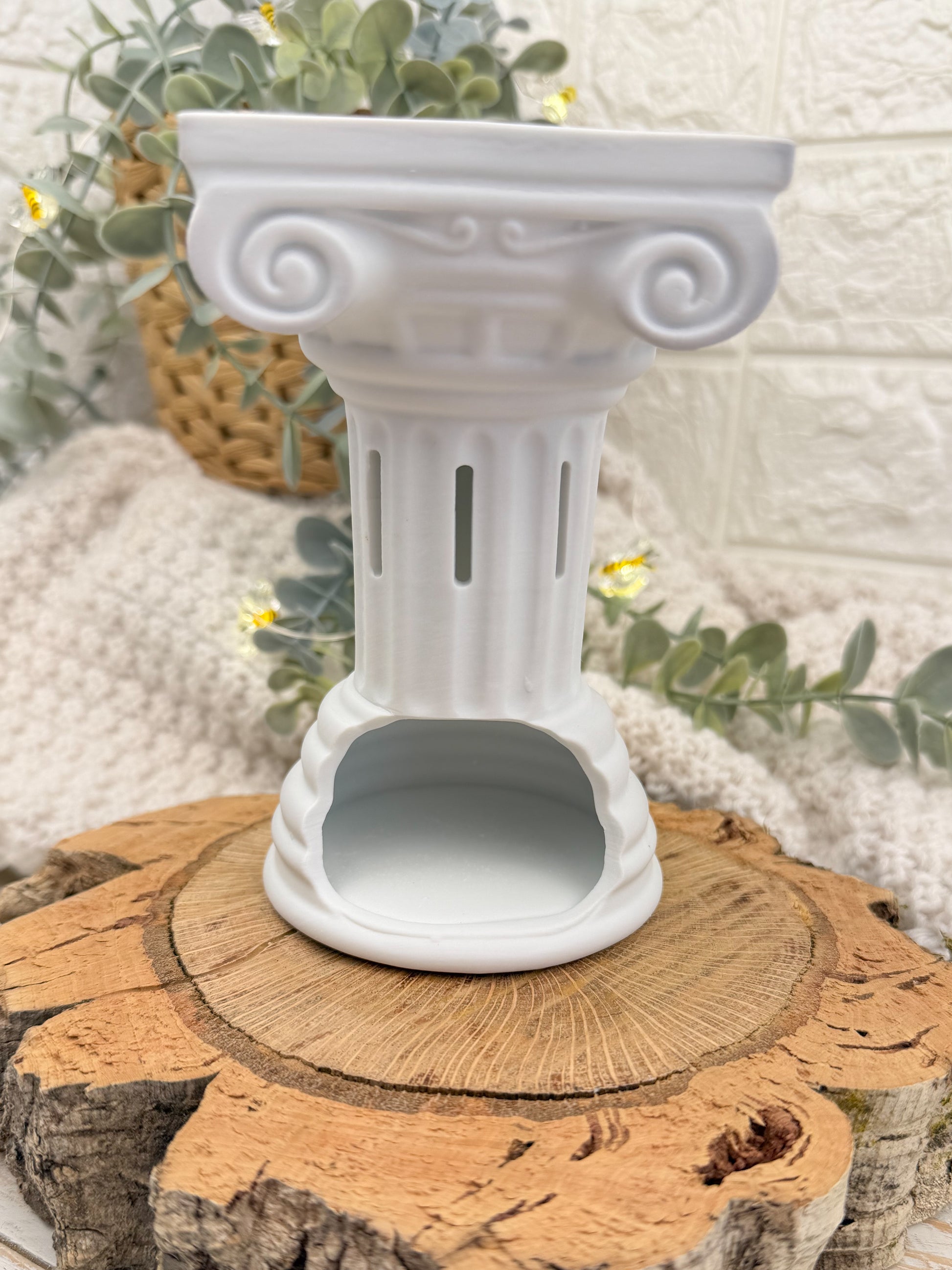 “Calíope” es un quemador de cerámica blanca con diseño inspirado en líneas clásicas y relieves delicados que aportan equilibrio y sofisticación. Su forma estructurada recuerda a la arquitectura atemporal, reinterpretada en una versión limpia y luminosa.