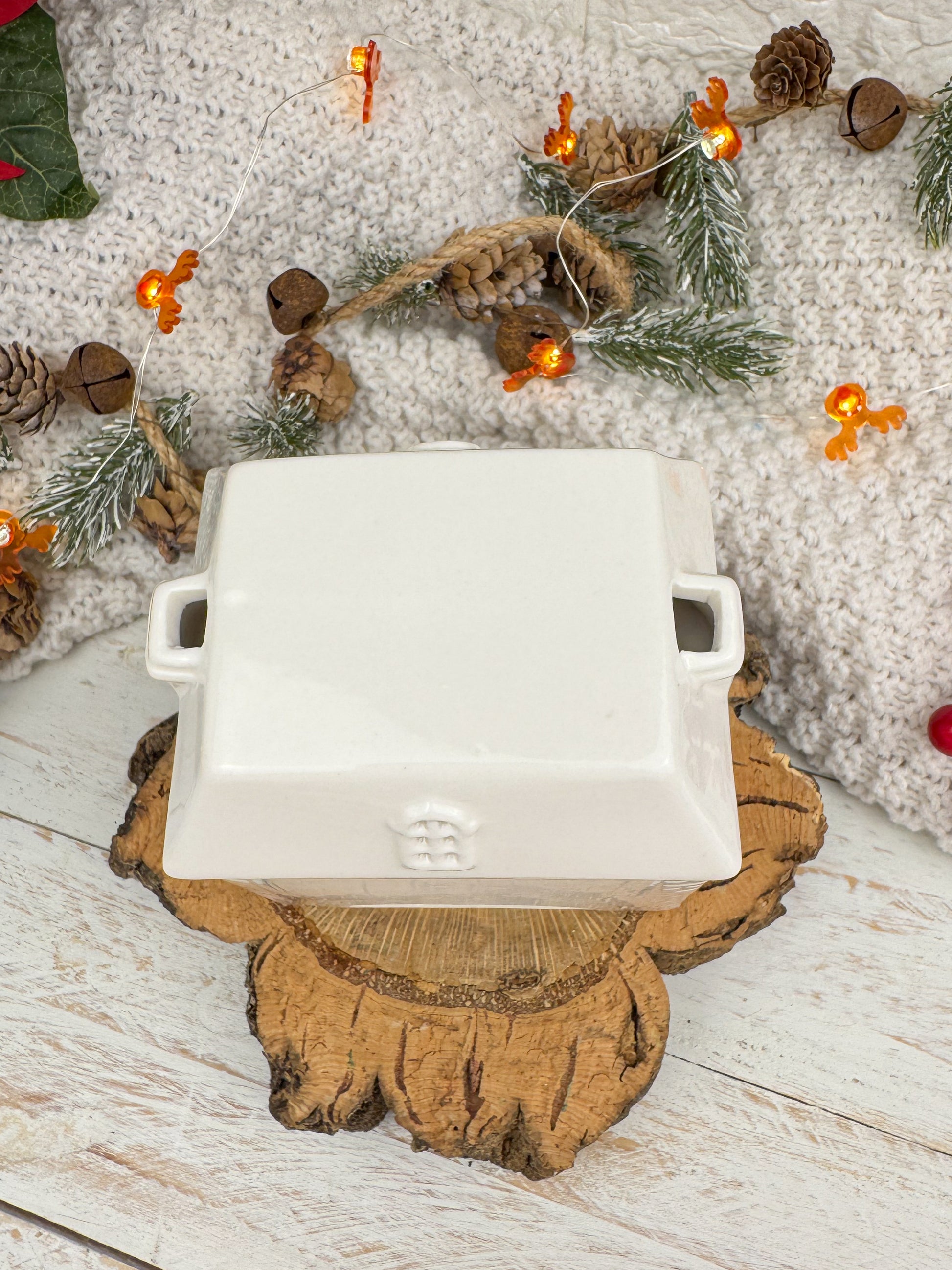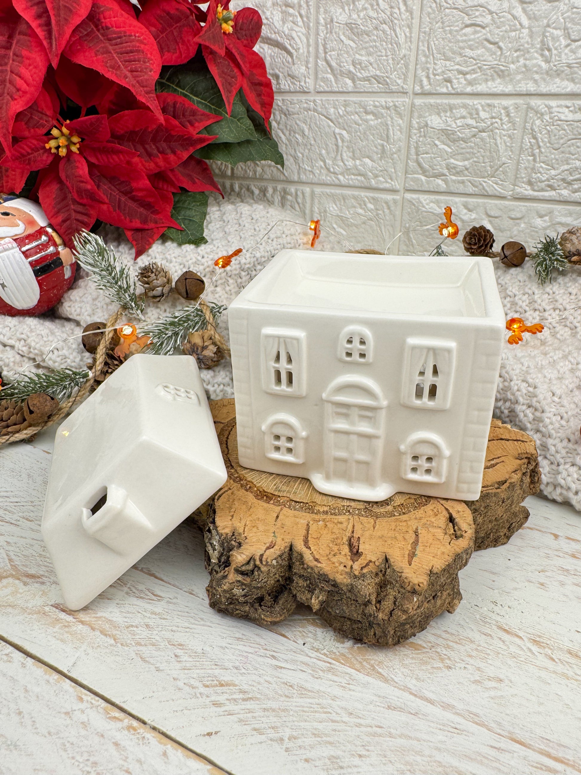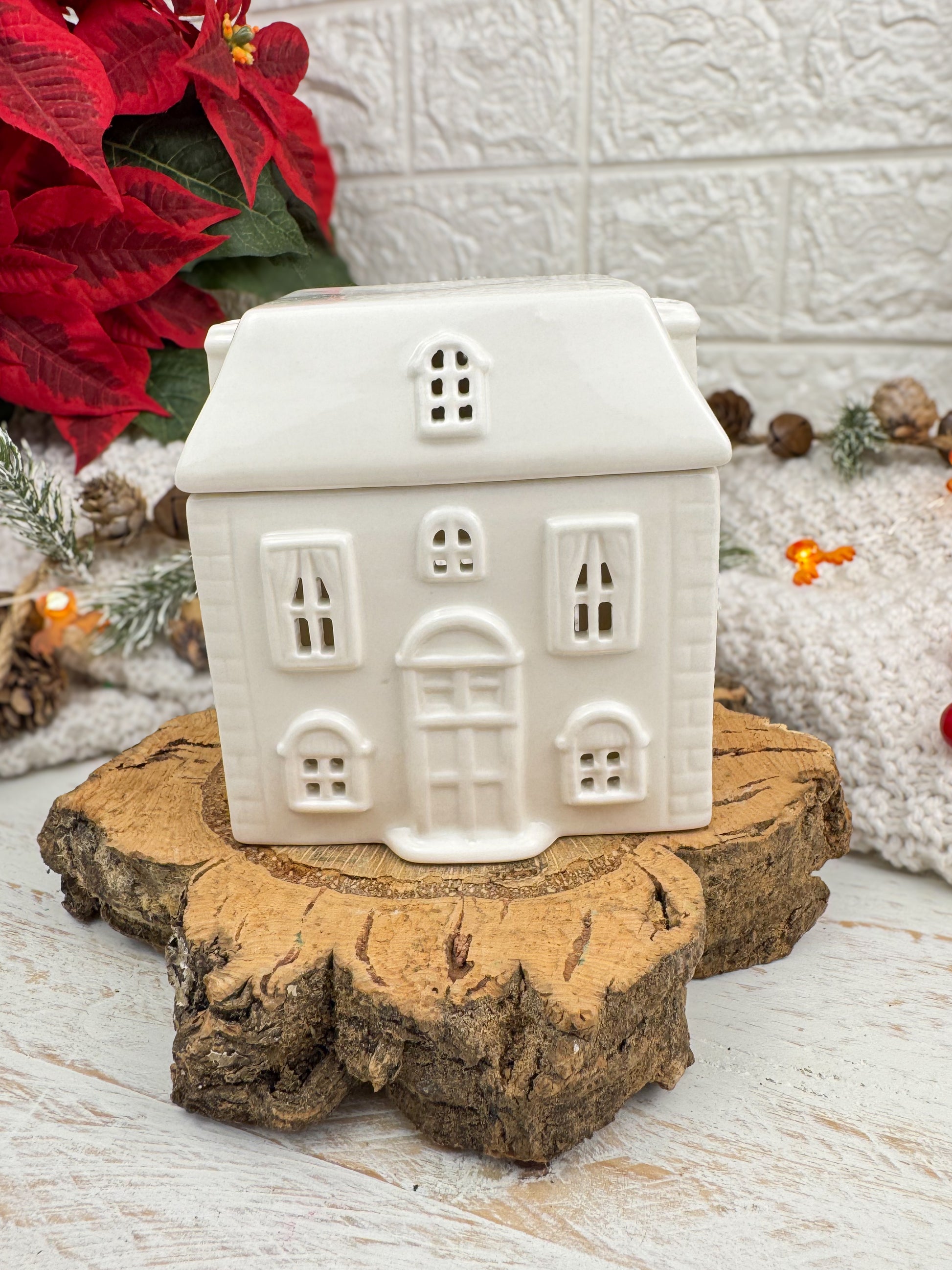 Esta pequeña casita blanca parece caída del cielo en plena nevada. Suave, luminosa y llena de encanto, se enciende por dentro como si guardara un hogar diminuto donde siempre huele a galletas recién hechas y a abrazos calentitos.