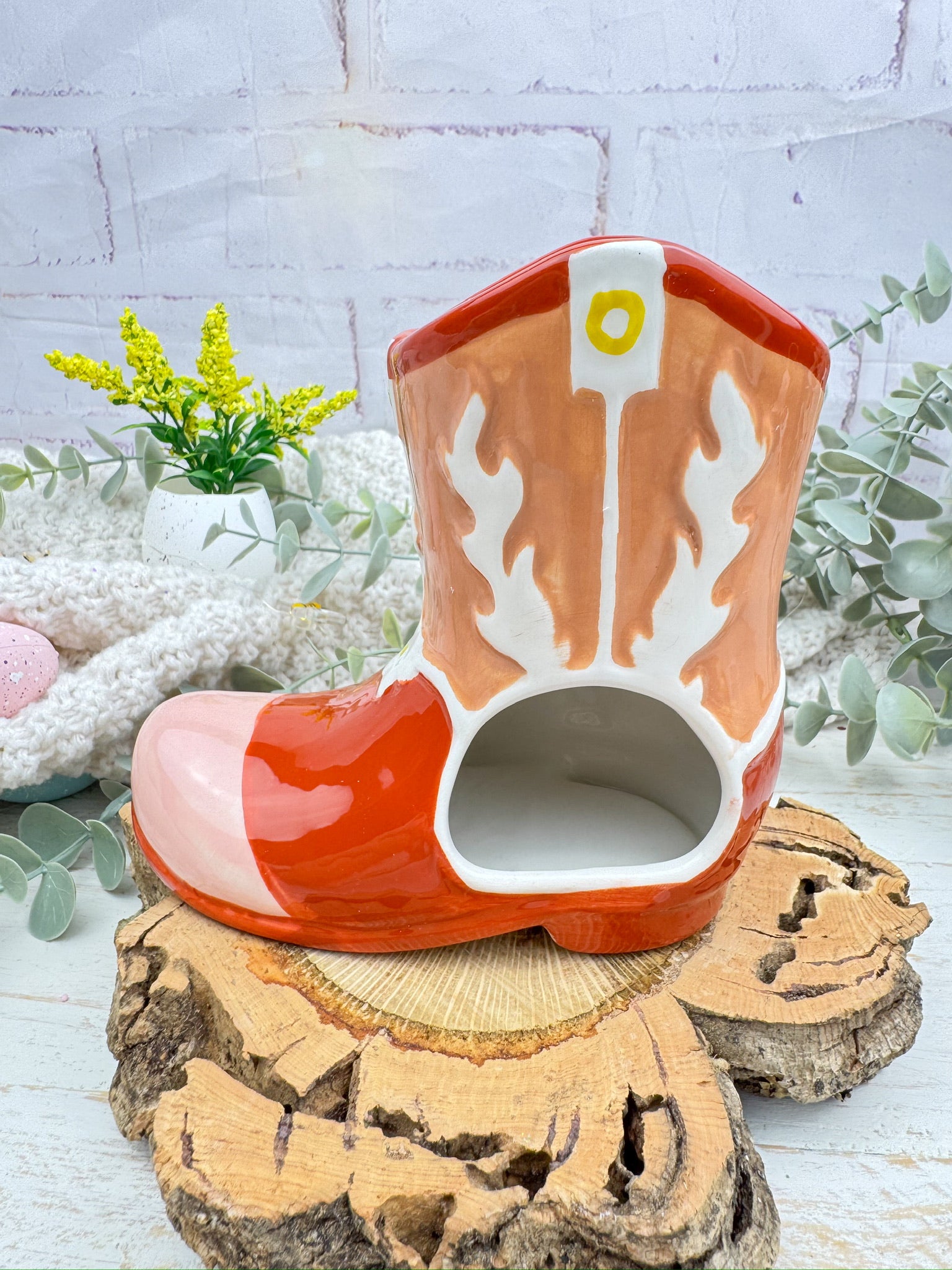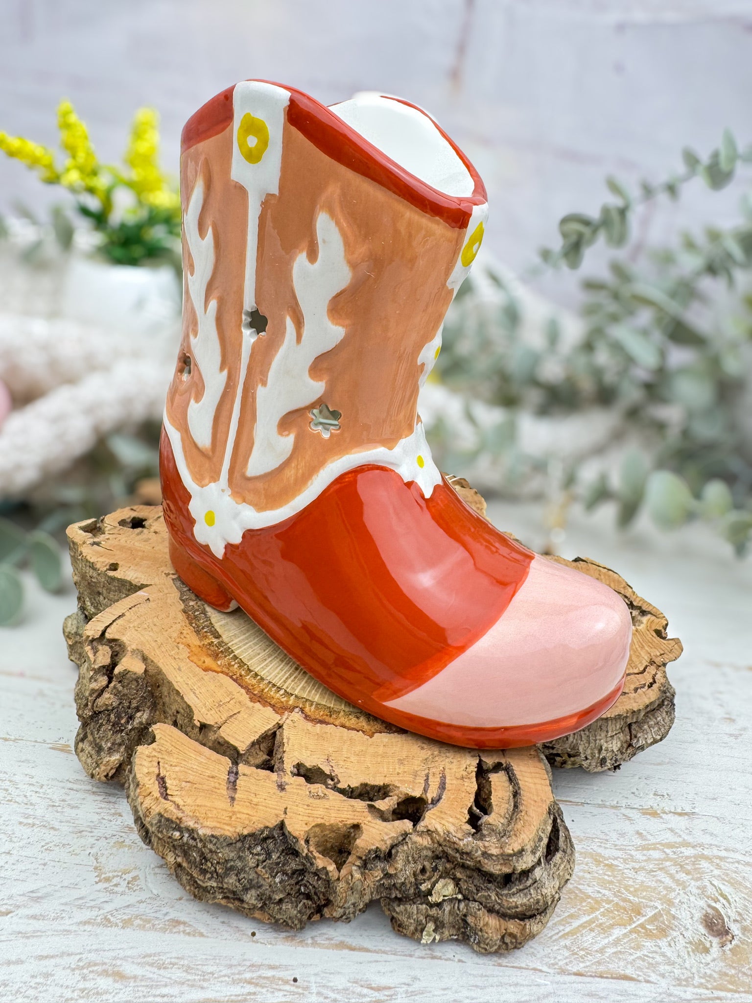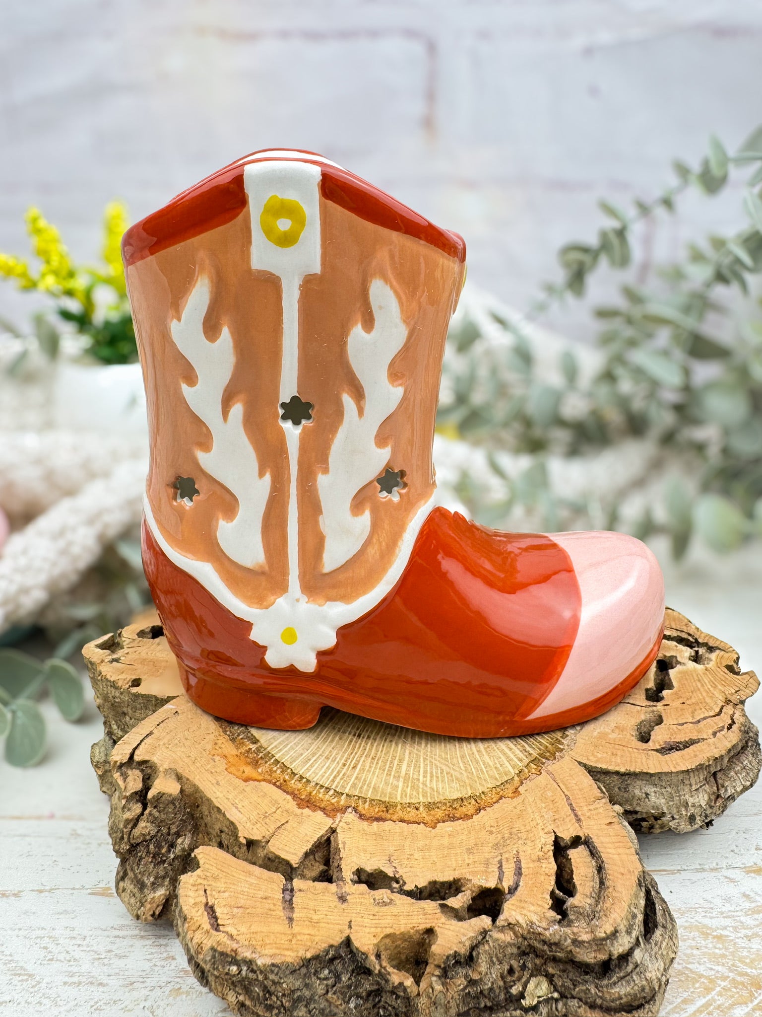 Añade un toque rústico y aventurero a tu espacio con este quemador en forma de bota de cowboy. Perfecto para los amantes del estilo western, este diseño detallado funciona con vela de té para derretir wax melts y llenar tu hogar con aromas cálidos y acogedores. Ideal para decorar con carácter y personalidad.