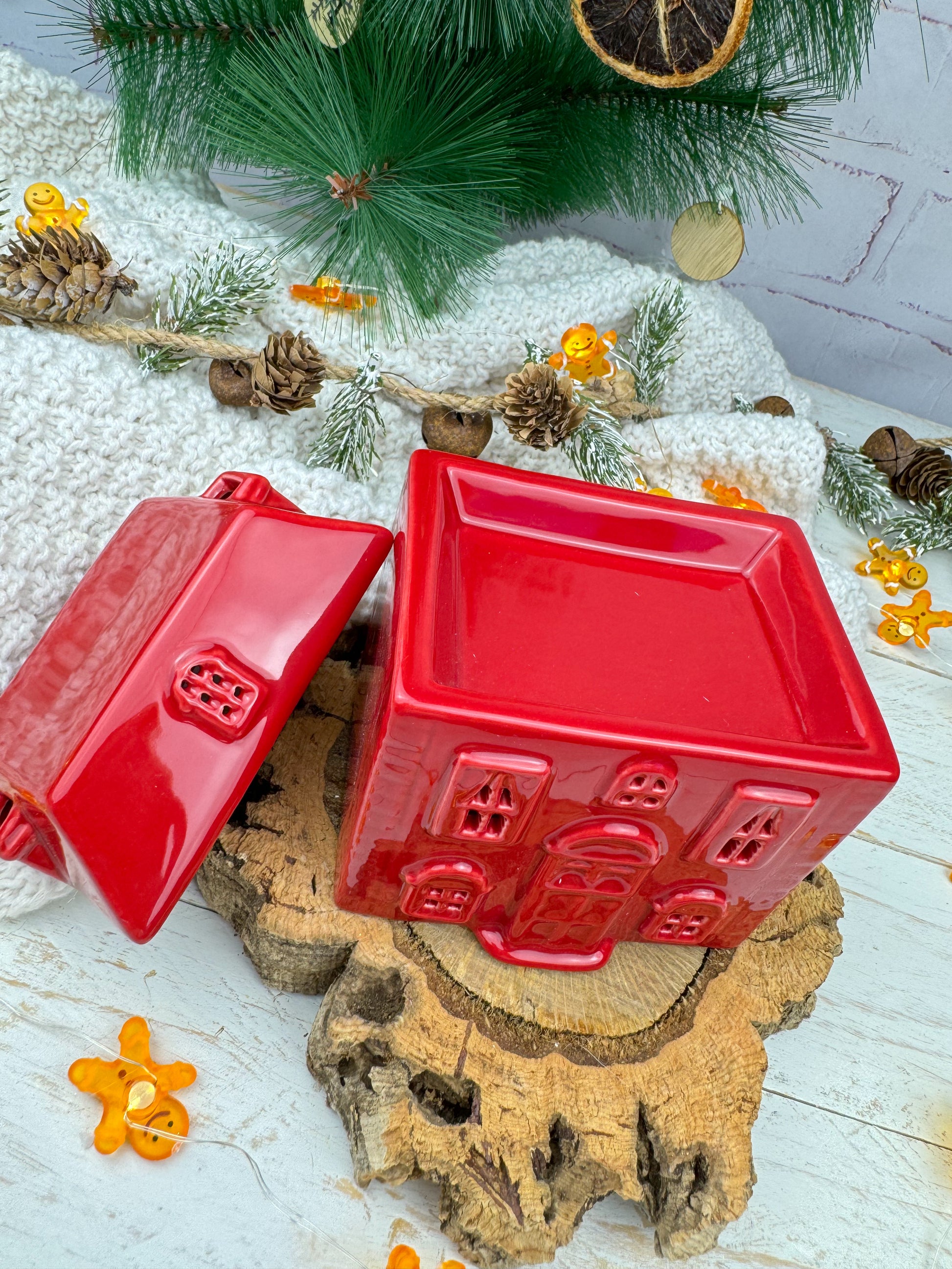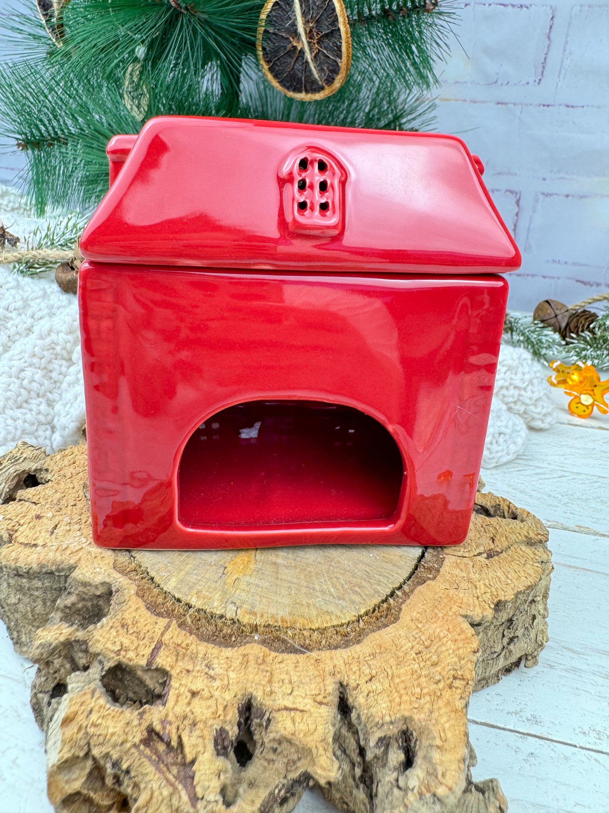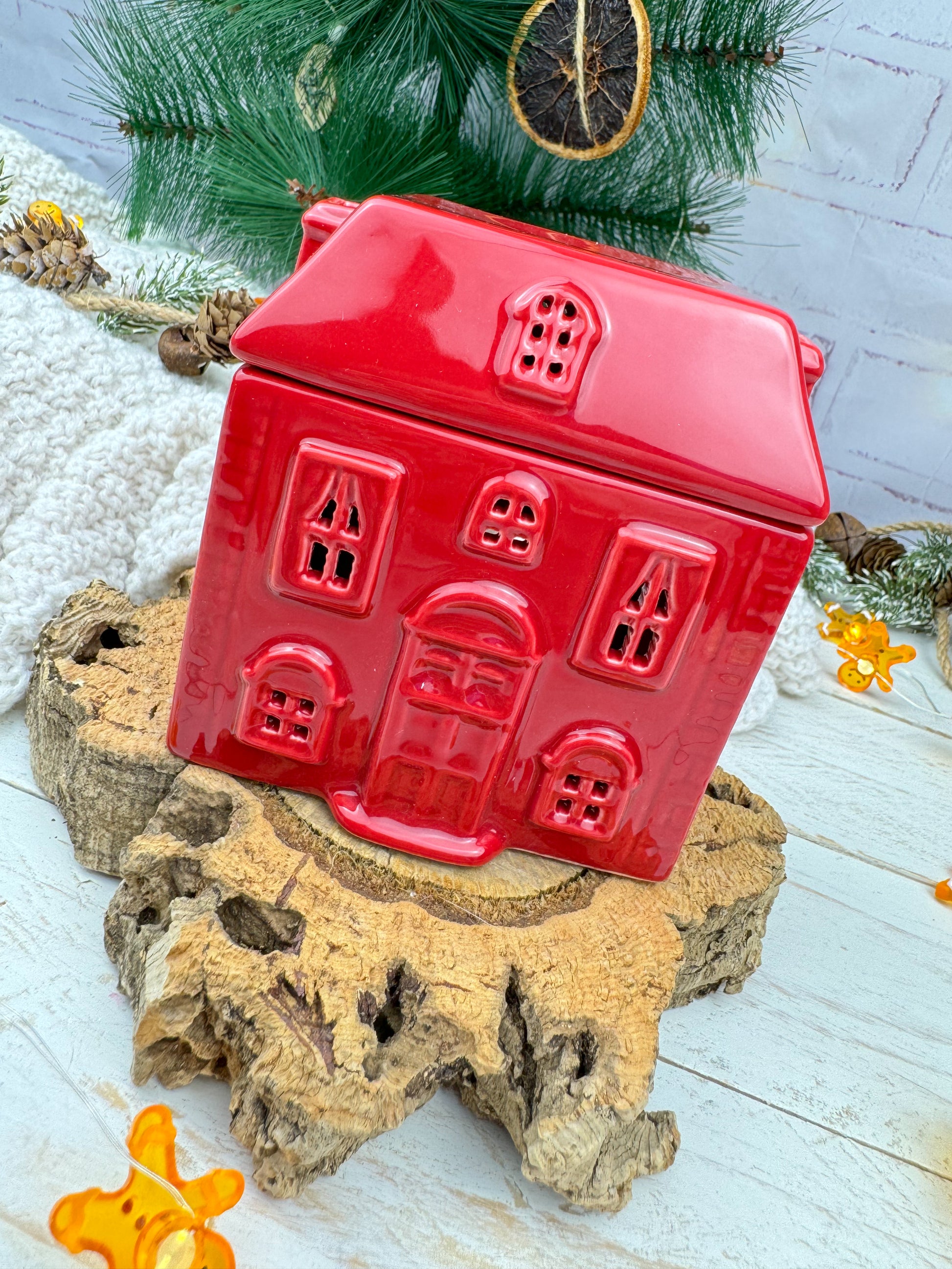 Déjate envolver por la magia y la calidez de Scarlet Cottage, un encantador quemador de cerámica en forma de casita roja diseñado para transformar cualquier espacio en un refugio acogedor.